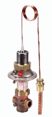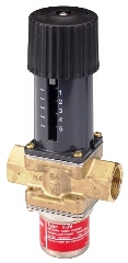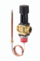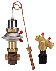 | Zawór termostatyczny bezpośredniego działania do układów przygotowania c.w.u., składa się z zaworu regulacyjnego i sterującego. Regulator wykorzystuje zasadę kompensacji przepływu poprzez współpracę z zaworem sterującym zamontowanym przed wymiennikiem ciepła na zasilaniu wody zimnej. Regulator stosowany w układach z przepływowymi wymiennikami ciepła, zaprojektowany z myślą o wymiennikach płytowych.